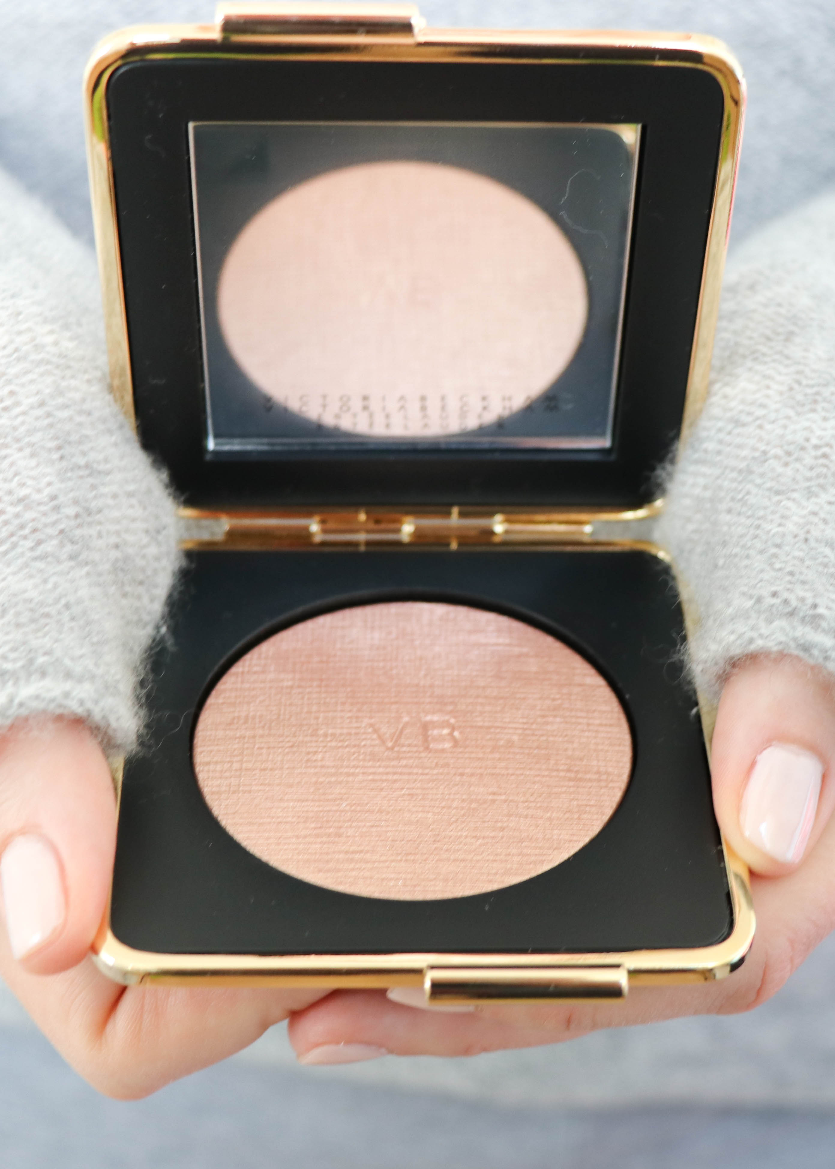 As a make-up lover I felt pretty excited when I got my hands on the this fall’s Victoria Beckham and Estée Lauder collection. I have been a fan of Estée Lauder products for a long time. The company’s Double Wear Foundation is my holy grail. After seeing these beautifully packaged products I knew I had to get them. In total I picked up 4 items at the beauty counter. I have been using them for about 3 weeks now: the Morning Aura Illuminating Creme, the Skin Perfecting Powder, the bronzer in Saffron Sun and, probably my favourite product of the collection, the highlighter in Modern Mercury.