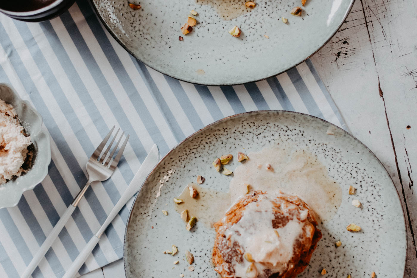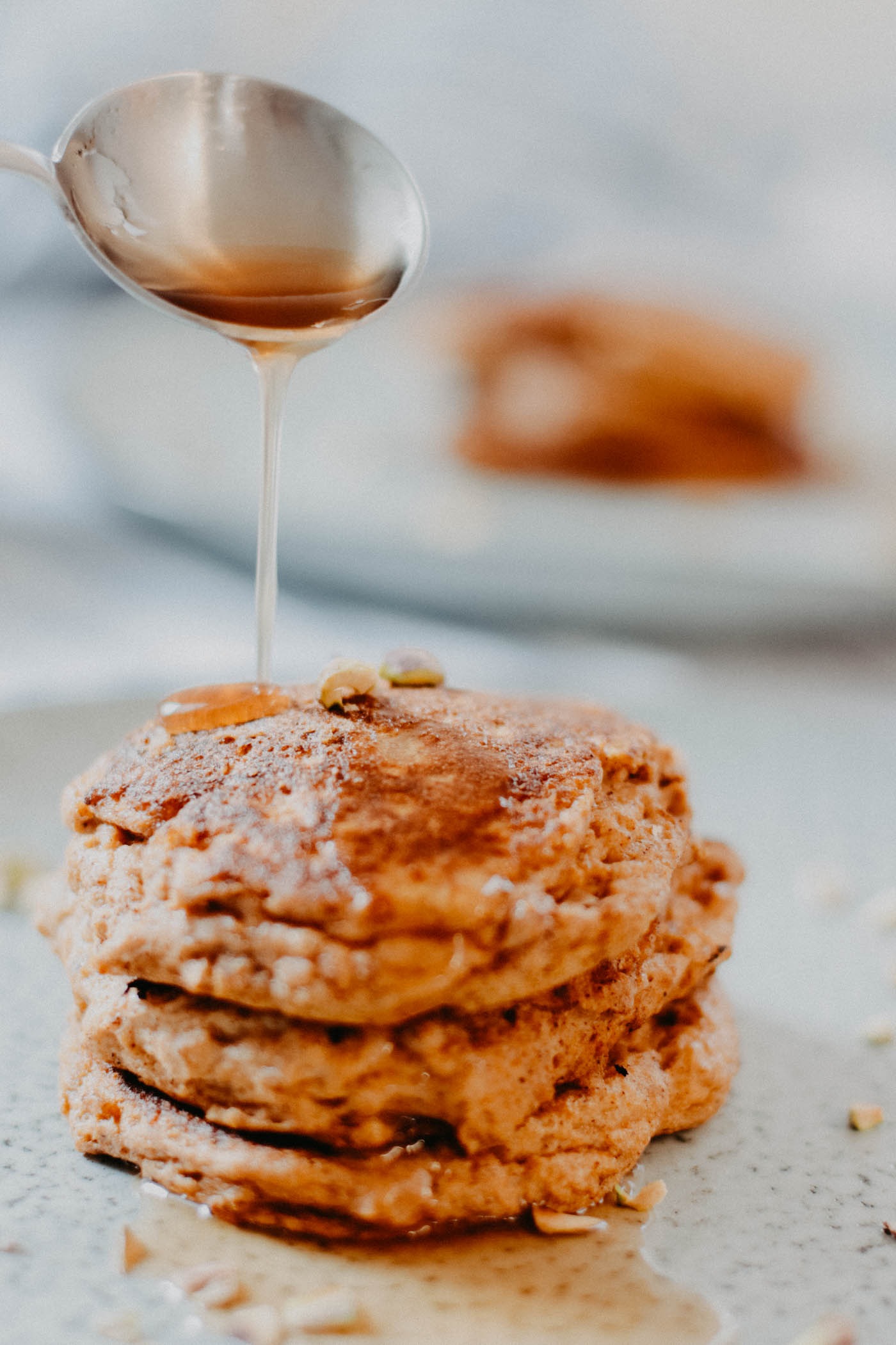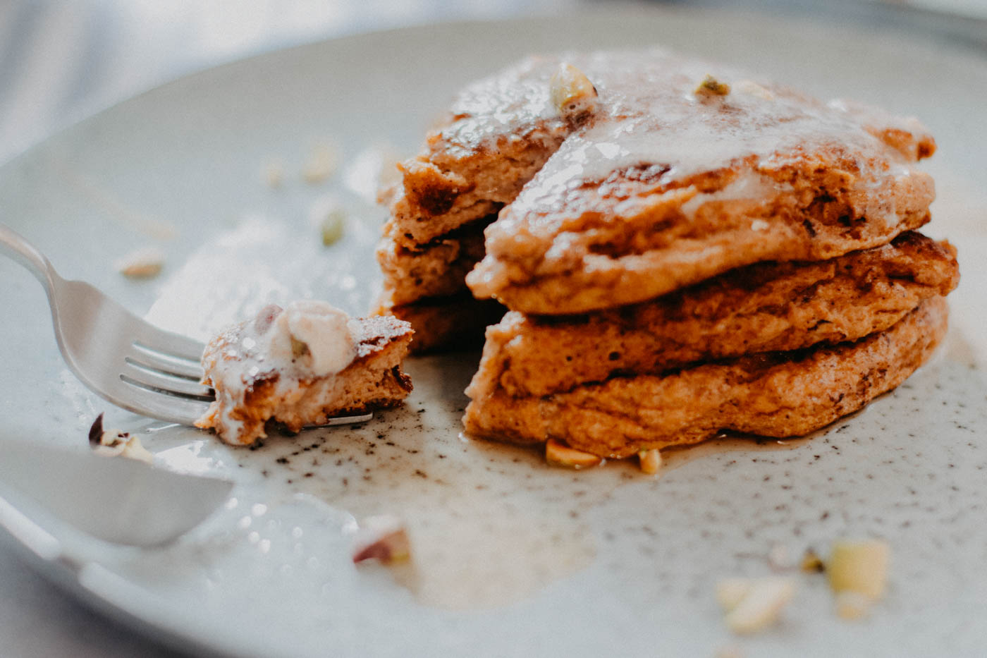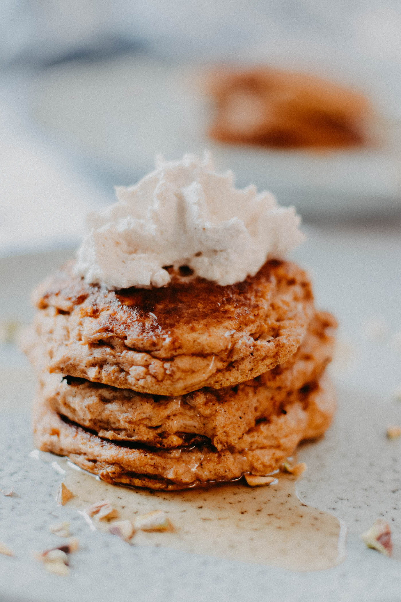 - Serve the Pumpkin Ricotta Pancakes with chopped pistachios, a dollop of cinnamon whipped cream and/or drizzle some maple syrup over your stack.