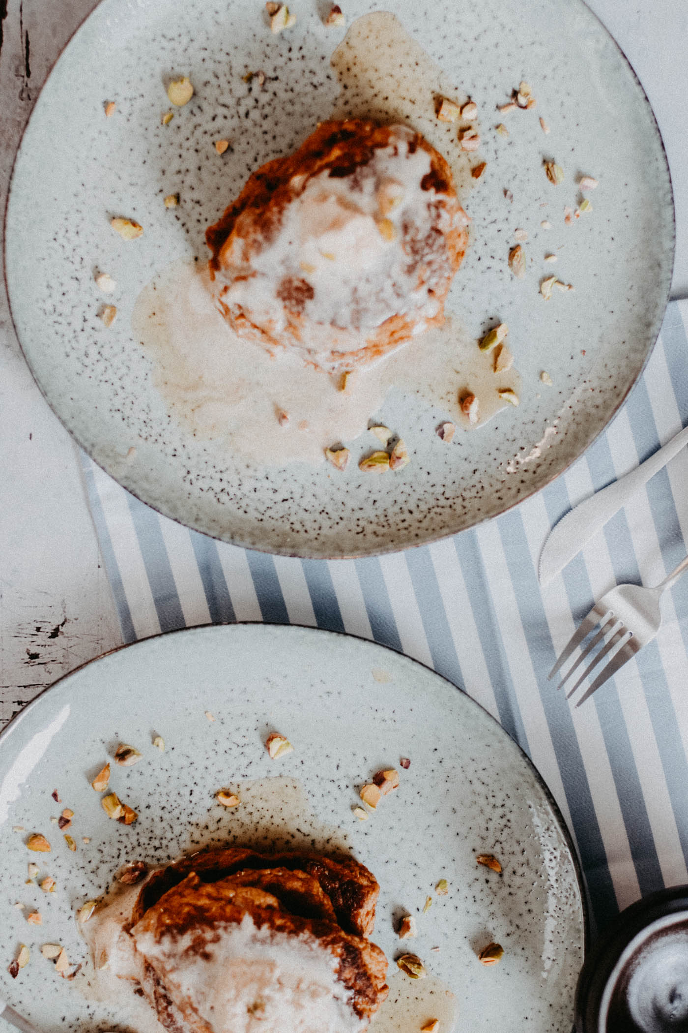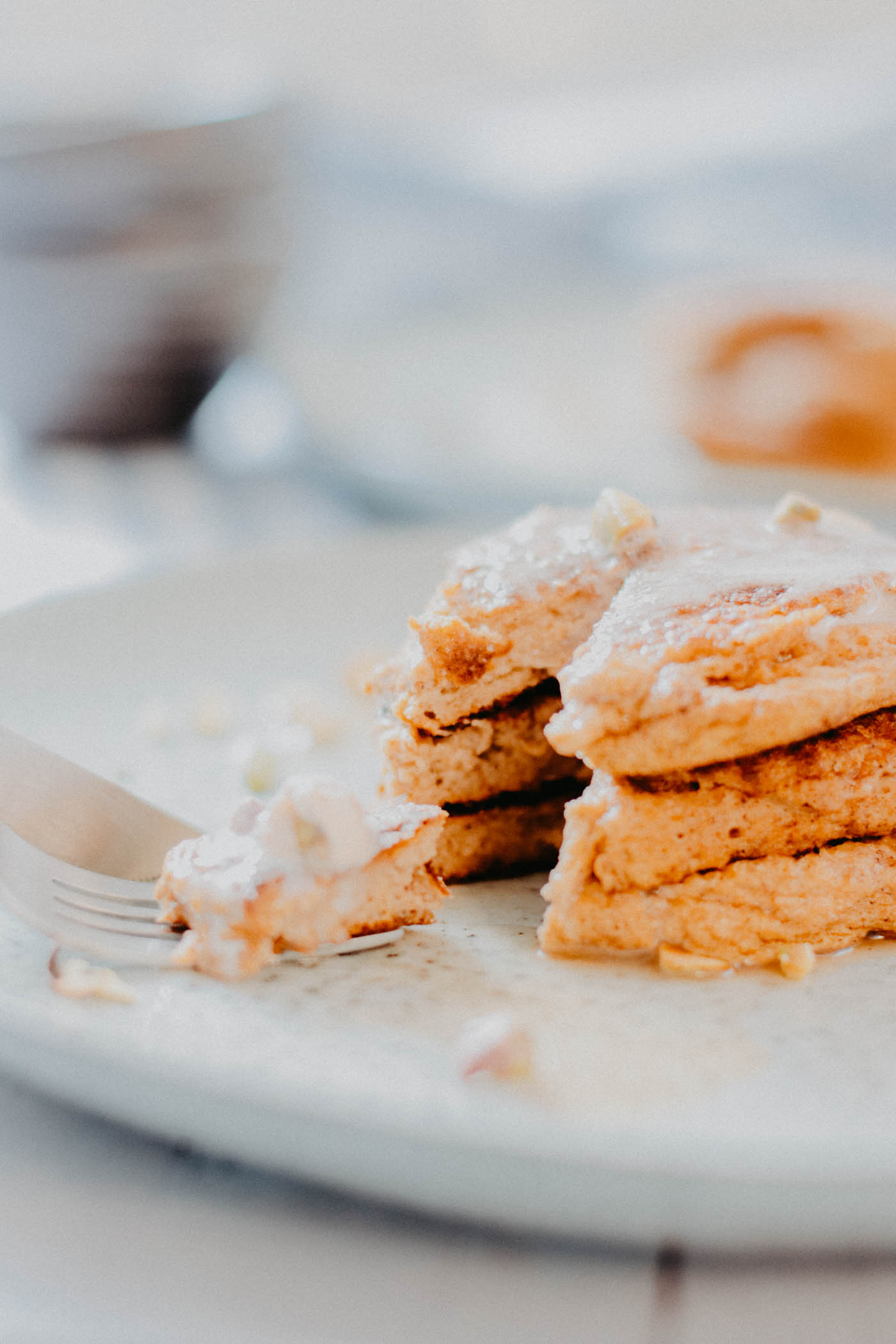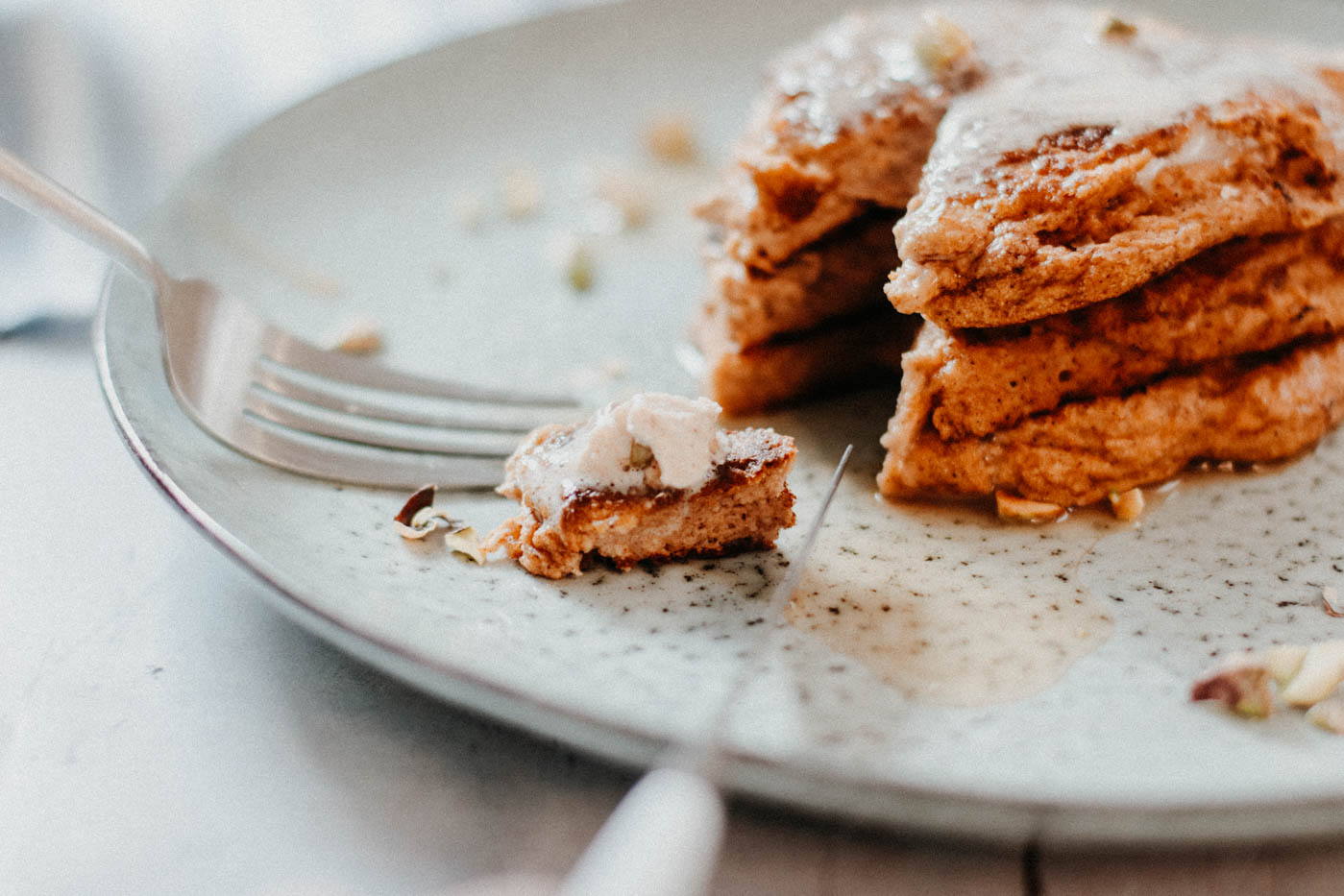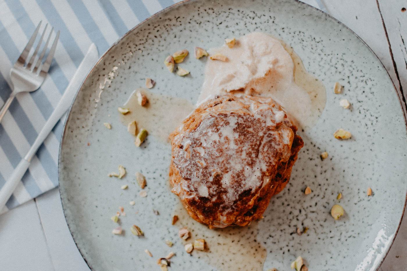 - Serve the Pumpkin Ricotta Pancakes with chopped pistachios, a dollop of cinnamon whipped cream and/or drizzle some maple syrup over your stack.