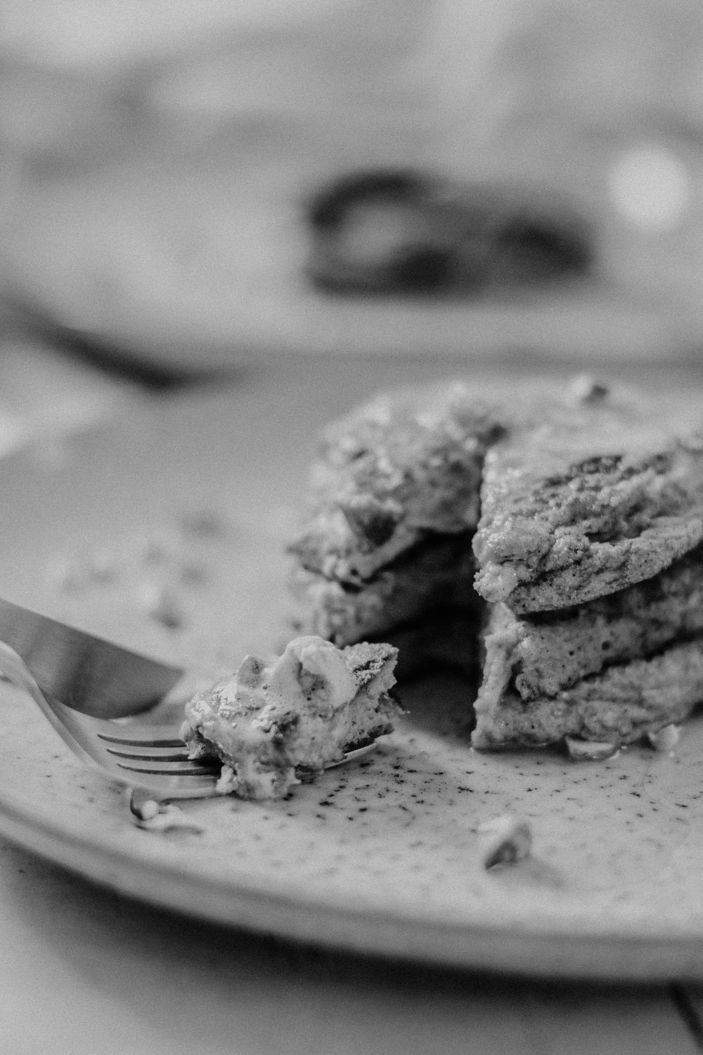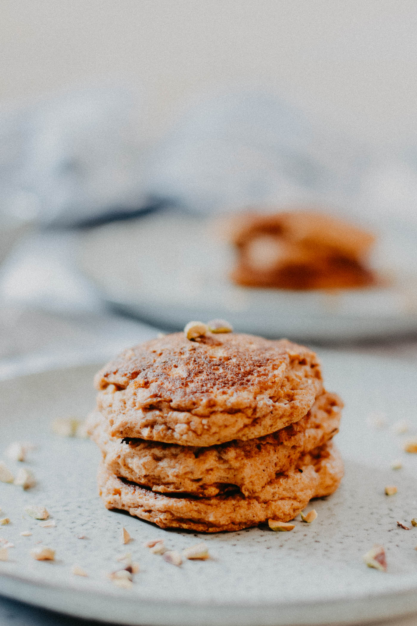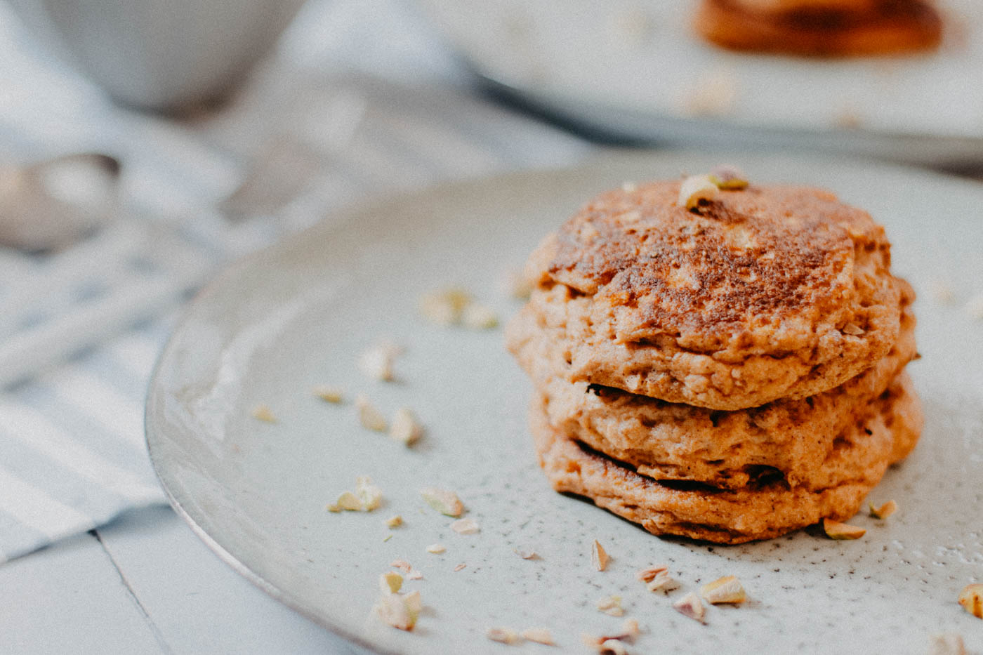I’m sure you’ll greatly enjoy these pancakes because let’s be real for a second: who does not love to dig into a fluffy stack of pancakes? Especially a guilt-free stack of pancakes! If you’re counting carbs you’ll want to know that a serving of these pancakes has less than 5g of carbs (if you skip the pistachios).
