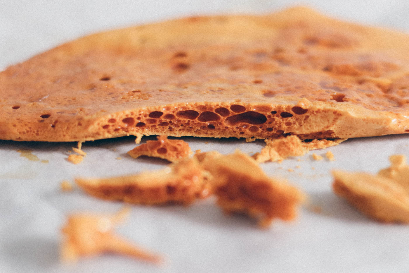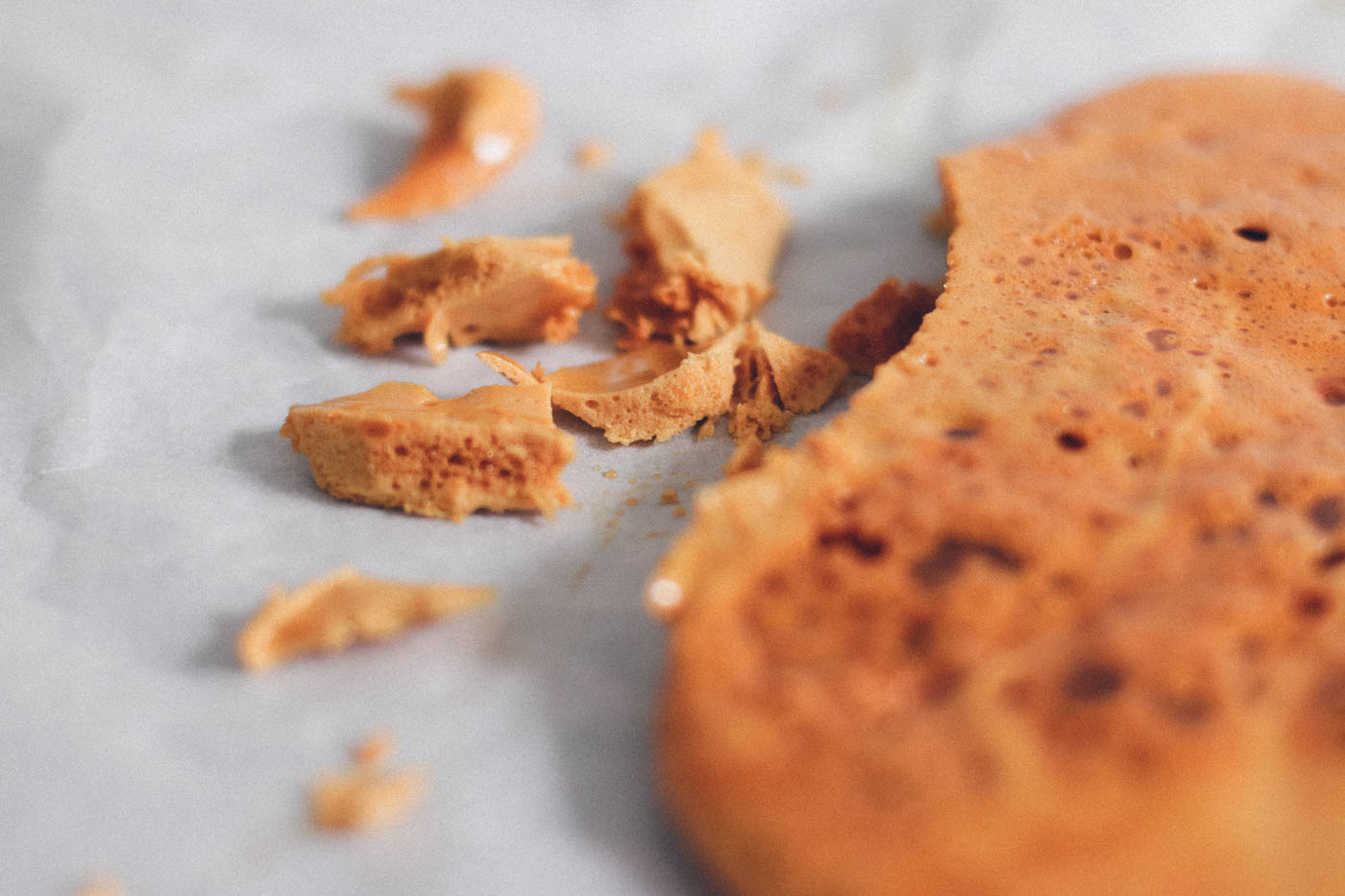 - Then pour the mixture onto the baking tray and set aside to cool. Once cooled, break the honeycomb into large chunks.